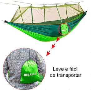 Feita com materiais leves, a rede é fácil de transportar, mas também sendo ideal para caminhadas e acampamentos onde a mobilidade é essencial.
