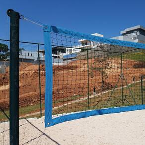 - Dimensões: 8,20m C x 1,00m A - Faixas: 4 faixas de Lona PVC com cordas e ilhós de latão - Fio: 2mm de polietileno, 100% virgem, com tratamento Anti-UV - Malha: 5x5cm Cor da faixa: Azul Oceano