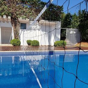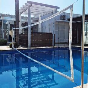 Rede de Biribol Vôlei de Piscina 4 Faixas 4 Metros.Medindo 4,00m de comprimento por um 1,00m de altura, a Rede de Biribol Vôlei de Piscina da Gismar Redes possui uma excelente relação custo / benefício. Esta rede de vôlei de piscina é confeccionada com polietileno 100% virgem e possuem tratamento Anti-UV, prolongando a durabilidade da rede em diversas condições.Especificações:- Dimensões: 4,00m de comprimento por 1,00m de altura;- Faixas: 4 faixas sintéticas;- Fio: 2mm de polietileno, 100% virgem, com tratamento Anti-UV contra as ações do tempo ;- Malha: 14x14cm;- Cor das faixas: Branca.Garantia:Contra defeitos de fabricação, não cobrindo danos causados na/após sua instalação, como cortes, queimaduras, produtos químicos ou qualquer outro produto que altere a resistência do produto.