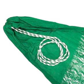 Principais Características: - Malha fechada - 3,40 x 0,70m - Malha aberta - 3,40 x 2,70m - Suporta aprox.: 150kg - Acompanha mochila (não tecido) - Cor: Disponível na cor Azul e Verde - Possui cordas para amarração -Fabricante: Mazzaferro -Modelo: Araty Relax Petit -Material: Tecido sintético 100% polipropileno, malha 18 sem nós, o que a torna extremamente confortável -Peso Suportado: 200 kg