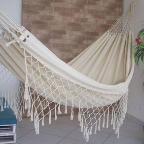 Dimensões: 2,70 m x 1,62 m Comprimento Total: 4,20 m Peso: +/ 2,000 kg Capacidade Máxima de Carga: 200 kg Composição: 100% Algodão Distância Ideal dos Ganchos: Aprox. 2,90 a 3,60 m Altura Ideal dos Ganchos: Aprox. 1,90 m