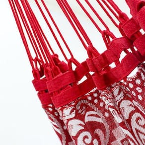 Rede De Dormir Casal Indiana Vermelho Com BrancoRede de Dormir Casal Indiana lembra os mesmos tecidos utilizado e fabricado na índia, com desenhos arabescos em diversos formatos e cores, é uma ótima opção para decoração do seu ambiente.Temos diversas estampas e cores, porém não é possível escolher uma estampa especifica, elas são enviadas aleatoriamente, é possível escolher as cores do tecido.Dimensões: 2,60 m x 1,70 m só tecido Comprimento Total: 4,20 m punho a punho Peso: +/- 1.800 kg Capacidade Máxima de Carga: 200 kg Composição: 100% Algodão Distância Ideal dos Ganchos: Aprox. 2,,90 a 3,30 m Altura Ideal dos Ganchos: Aprox. 1,90 mGarantias:Nossas redes de dormir são feitas com fios de alto padrão, suas cores não desbotam e nem mancham, mantendo a coloração nítida das cores desde que sejam seguidos os procedimentos em nossos manuais de instruções. Pode haver uma diminuição ou esticamento de cerca de 5% do tamanho total devido à lavagem. Nossas redes de descanso são pré-selecionados por uma equipe que atesta a sua segurança e a qualidade contra os defeitos de fabricação.As vantagens das redes de dormir:. As redes se adaptam facilmente as necessidades de deslocamento e mobilidade, pois se trata de um objeto facilmente transportável.. As necessidades de higiene, porque durante o dia pode ser facilmente lavada e arejada. Fácil disponibilidade, pois durante o dia pode ser retirada e guardada, deixando a área da habitação livre para os afazeres domésticos e circulação. Versatilidade, podendo serem armadas tanto em espaços internos, quanto externos: debaixo de árvores, entre colunas e vigas ou quaisquer troncos de árvores, como também em parques, praias, jardins ou camping, bastando para isso somente duas cordas para mantê-las suspensas.Transporte: compacta, leve e de fácil manuseio, não ocupam muito espaço, podendo ser levadas em viagens e passeios nos fins de semana. Pode ser usada como cadeira.Para quem curte esportes ecológicos como trilhas ou camping, ela ainda oferece inúmeras vantagens. É muito mais confortável que dormir no chão dentro de sacos de dormir. Preservam de perigos, pois ficam suspensas a certa altura do chão protegendo contra ratos, cobras, aranhas, formigas, etc. Seu peso leve possibilita ir mais longe nas caminhadas e travessias. Possibilidade de acampamentos ilimitados em florestas, levando alguns minutos para encontrar um local para se acomodar. Possibilita dormir em locais com visuais aonde a barraca não chega, com a possibilidade de visualização da lua e estrelas. Evita dormir em locais de acampamentos lotados. Acampar com o mínimo de impacto, sem necessidade de abrir clareiras ficando em paz e harmonia com a natureza.
