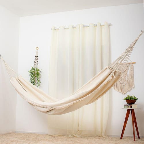 Composição: 100% Algodão. Distância Ideal dos Ganchos: Aprox. 2,90 a 3,60 m.
