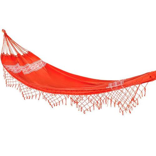 O fato é que muitas cores acabam sendo nomeadas por comparação com as cores que predominam em certos objetos naturais do convívio das pessoas de onde os nomes surgiram.O laranja é uma cor quente, sendo a mistura exata entre o amarelo e o vermelho. É pois uma cor ativa que significa movimento e espontaneidade. O laranja é a cor do sucesso, da agilidade mental, e da prosperidadeNessa rede de descanso, temos 26 cabeças feitas manualmente em cada lado da rede de dormir, reforçado por uma tira de manumcaba batidas num pequeno tear de pau dando reforço especial no seu punho. Cada lado desse punho é comporto de 13 pares de corda trançadas empunhadas manualmente. Seu babado varanda é confeccionada com apenas uma cabeça de nó feitos manulamente.O seu tecido das nossas redes de dormir é batido num tear elétrico, com fios 8/1 com desenhos interlalados de duas cores entre bege e marrom. Com uma trama diferente antes de cada punho. Dimensões: 2,50 m x 1,40 m só tecido Comprimento Total: 3,70 m punho a punho Peso: +/- 1,800 kgCapacidade Máxima de Carga: 180 kgComposição: 100% AlgodãoDistância Ideal dos Ganchos: Aprox. 2,90 a 3,60 m Altura Ideal dos Ganchos: Aprox. 1,90 m.Garantias:Prazo de validade é de tempo indeterminado, nossas redes não mancham e nem soltam tintas desde que sejam lavados de acordo com o manual que acompanha. Pode haver uma diminuição ou esticamento de cerca de 5% do tamanho total devido a lavagem. Nossas redes de dormir são pré-selecionados por uma equipe que ateste sua segurança e qualidade contra os defeitos de fabricação.