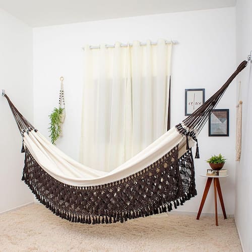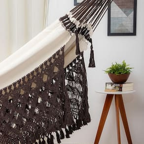 Rede de Dormir Clone Especial Bege com Marrom, Beleza e Requinte numa Rede de Descanso, acabamentos exclusivos em Macramê com detalhes feito à mão.