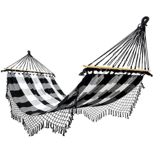 Ideal para aqueles que preferem a rede aberta, tornando o ambiente mais bonito e aconchegante, pode ser usada na varanda, áreas verdes da casa, ou dormir um sono após o almoço. Produzida com fios de algodão, artesanalmente, tecido macio e confortável, tornando o seu descanso mais relaxante e possui capacidade de peso de até 190 kg. Esse modelo especial de Rede de Dormir possui madeiras nos dois lados da rede que permite deixá-la sempre aberta. Comprimento Total:3,90 metros Dimensões tecido: 2,40 x 1,50 metros Com franja nas laterais Peso: +/- 2,800 kg Tecido em Algodão Capacidade Máxima de Carga: 190 kg Madeira: 94 cm cada madeira O prazo de validade é de tempo indeterminado. Não mancham e nem soltam tinta, desde que sejam lavadas corretamente. Pode haver uma diminuição ou esticamento de cerca de 5% do tamanho total devido à lavagem. Redes pré-selecionados que atesta a segurança e a qualidade contra os defeitos de fabricação.