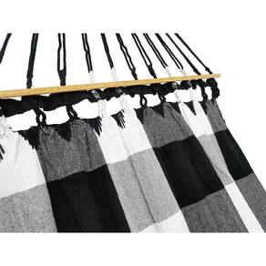 Ideal para aqueles que preferem a rede aberta, tornando o ambiente mais bonito e aconchegante, pode ser usada na varanda, áreas verdes da casa, ou dormir um sono após o almoço. Produzida com fios de algodão, artesanalmente, tecido macio e confortável, tornando o seu descanso mais relaxante e possui capacidade de peso de até 190 kg. Esse modelo especial de Rede de Dormir possui madeiras nos dois lados da rede que permite deixá-la sempre aberta. Comprimento Total:3,90 metros Dimensões tecido: 2,40 x 1,50 metros Com franja nas laterais Peso: +/- 2,800 kg Tecido em Algodão Capacidade Máxima de Carga: 190 kg Madeira: 94 cm cada madeira O prazo de validade é de tempo indeterminado. Não mancham e nem soltam tinta, desde que sejam lavadas corretamente. Pode haver uma diminuição ou esticamento de cerca de 5% do tamanho total devido à lavagem. Redes pré-selecionados que atesta a segurança e a qualidade contra os defeitos de fabricação.