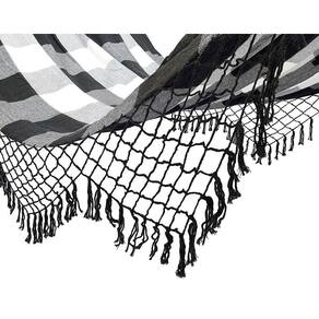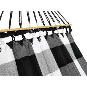 Comprimento Total:3,90 metros Dimensões tecido: 2,40 x 1,50 metros Com franja nas laterais Peso: +/- 2,800 kg Tecido em Algodão Capacidade Máxima de Carga: 190 kg Madeira: 94 cm cada madeira