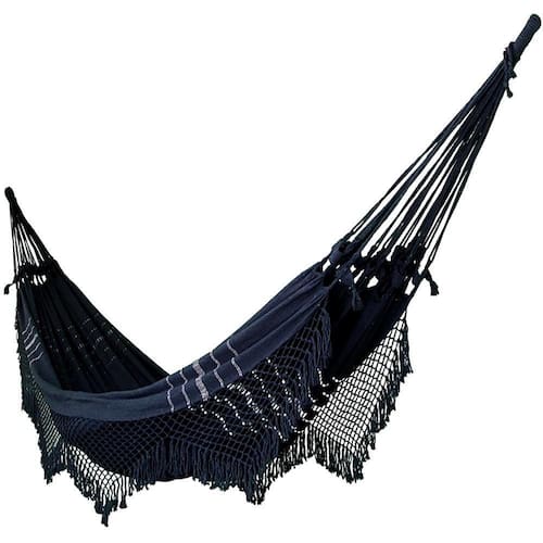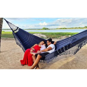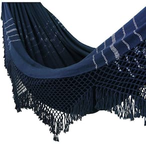 Rede de Dormir Descanso Casal Super King Azul Gigante A rede super king toda feita em algodão, possui grandes dimensões para acomodar com conforto duas pessoas de grande estatura Confeccionada com algodão de alta qualidade que garante sua resistência e durabilidade.Especificações-comprimento total da rede 470 cm-comprimento total do tecido 300 cm-largura total do tecido 180 cm-capacidade máxima de peso 250 kg-peso total da rede 3,000 kg-composição 100% algodão Instalação recomendada-altura média do gancho em relação ao chão 160 cm-distância média entre os ganchos 330 cmAs informações acima podem variar de acordo com o ambiente que será feita a instalação da rede.