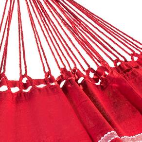 Dimensões: 2,55 m x 1,55 m só tecido Comprimento Total: 3,90 m punho a punho Peso: +/- 1,950 kg Capacidade Máxima de Carga: 180 kg Composição: 100% Algodão Distância Ideal dos Ganchos: Aprox. 2,90 a 3,60 m Altura Ideal dos Ganchos: Aprox. 1,90 m