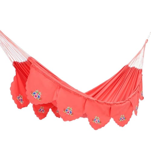 Lançamento Exclusivo das Redes de Dormir. Rede de Dormir Sol a Sol Luxo Salmon com tema infantil, uma rede desenvolvida com alto padrão de qualidade, com tecido de brim antialérgico, recomendado para crianças e idosos. Acabamento totalmente manual, com costura que reforçam a segurança no punho. Esse modelo exclusivo tem babados laterais confeccionados no próprio tecido com detalhes bordados com temas infantis. Dimensões: 2,55 m x 1,60 m Comprimento Total: 4,15 m Peso: +/- 1.900 kg Capacidade Máxima de Carga: 180 kg Composição: 100% Algodão Distância Ideal dos Ganchos: Aprox. 2,90 a 3,60 m Altura Ideal dos Ganchos: Aprox. 1,90 m Garantias: Nossas redes de dormir não mancham e nem soltam tinta. Pode haver uma diminuição ou estiramento de cerca de 5% do tamanho total devido à lavagem. Nossos produtos são pré-selecionados por uma equipe que atesta sua segurança e qualidade contra os defeitos de fabricação