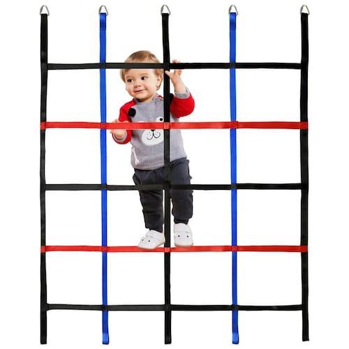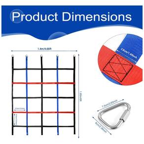A rede de escalada pode ser facilmente anexada a um conjunto de balanço, playground ou equipamento de playground. Excelente para exercitar a parte física e mental das crianças, melhorando o equilíbrio e a coordenação. Feita de poliéster resistente, durável e resistente ao desgaste, com costura requintada. Os anéis triangulares e os ganchos galvanizados suportam até 250 kg. Adicione essa rede de escalada à sua casa da árvore, playground ou ninja line para tornar a diversão das crianças mais segura e emocionante! Inclui uma rede de escalada de poliéster de alta qualidade e 5 mosquetões triangulares para pendurar. Resistente, seguro e de fácil montagem, com 180cm de altura e 145cm de largura. Ideal para cursos de obstáculos de guerreiro ninja, casa da árvore, balanço e playground ao ar livre. Apropriado para melhorar a força física e mental das crianças, equilíbrio, coordenação e diversão ao ar livre.