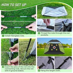 - ?Fácil de instalar e desmontar? Simplificamos o procedimento de instalação, montamos dois postes cruzados, apoiamos a barraca da cúpula e fixamos com pontas de aterramento. A desmontagem também é simples, basta empurrar os postes para fora. Desta forma, você pode facilmente configurar a rede de golfe em qualquer lugar, como na sala de estar, jardim ou porão.
