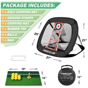 A Rede de Chipping de Golfe da SENSECLUB apresenta 3 bolsos dinâmicos com alvo para golfistas de todas as habilidades. Pratique seus arremessos e divirta-se com jogos de golfe em um único conjunto. Trabalhe em vários tipos de chips e pitches a partir de diferentes distâncias e trajetórias, competindo com amigos para o desafio final. Comece a praticar o jogo curto no quintal ou em casa com bolas de golfe de treino. Mantenha suas habilidades de chipping afiadas com os acessórios de alvo de golfe. Fácil montagem e transporte: monte e desmonte a rede em 30 segundos sem usar ferramentas. Dobre facilmente a rede pop-up em uma bolsa para uso ao ar livre.