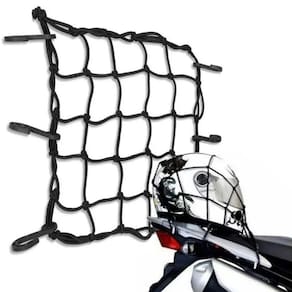Rede Elástica Aranha Para Moto Capacete Bagageiro 45cmX45cm Cor: Preto Rede elástica para bagageiro de motos medindo 45 cm x 45 cm com 6 ganchos. Disponível nas cores azul, laranja, preto, verde e vermelho. Escolha a cor desejada antes da finalização do seu pedido. A Rede elástica é um produto indispensável para o nosso dia a dia, é prático e muito resistente. desenvolvida para o transporte de objetos nos bagageiros de motocicletas, bicicletas, em porta-malas de carros, camping e também de uso domésticos. Ficha Técnica Medida da Rede: 45 cm x 45 cmCores Disponíveis: Azul, laranja, preto, verde e vermelhoQuantidade de Ganchos: 6Material: Borracha (capa de polipropileno e interior de látex ou câmara de pneu)
