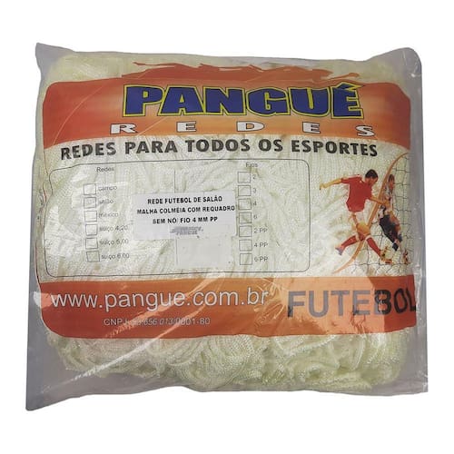 A Rede Futsal Pangué Fio 4MM Malha Colmeia com Requadro (Tipo Caixote, Modelo Europeu) Seda é confeccionada mais forte e resistente. Composta por material que aumenta ainda mais sua durabilidade, proteção Anti-UV, para que a malha não deforme seu tamanho com o passar do tempo.