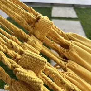 Se você tem um espaço grande na sua garagem, quintal ou área de lazer essa é a rede ideal para usar como decoração ou descansar com muito conforto! Por ser reforçada e suportar até 250 kg, é perfeita para mais de uma pessoa deitar e dormir sem perder o conforto devido ao seu tecido ser muito largo e um comprimento total jamais visto em uma rede para casal. Seu tecido feito com 100% Algodão dá uma sensação agradável ao toque e de relaxamento.