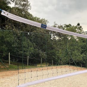 Rede vôlei de Praia Oficial com Duas Faixas Material: Polipropileno - 100% virgem, com tratamento contra as ações do tempo U.V ;Dimensões: 1,00 Metro de Altura e 8,50 Metros de Comprimento;Espessura do Fio: 2mm;Tamanho da Malha: 10x10cm;Cor: Preta;Faixas: Lona Superior e Inferior com 6cm de Largura;Garantia: Contra Defeitos de Fabricação, não cobrindo danos causados na/após sua instalação, como cortes, queimaduras, produtos químicos ou qualquer outro produto que altere a resistência molecular do produto.