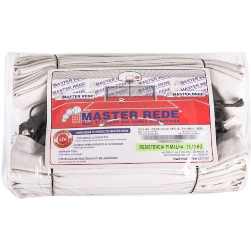 Rede Volei Esportiva Quadra Fio 4mm 1m x 10m 4 Faixas de Algodão Master Rede VO-4-4A é a solução ideal para quem busca resistência e qualidade em jogos de vôlei. Produzida em polipropileno de alta densidade e tratada contra raios ultravioleta, essa rede oferece durabilidade superior mesmo em uso constante ao ar livre. Com malha quadriculada 10x10 e quatro faixas de algodão reforçado, proporciona segurança e estabilidade durante a partida, garantindo excelente performance. Testada em laboratório para resistir a até 76,10 kg de tensão, é perfeita para quadras esportivas que exigem padrão oficial e confiabilidade. Invista em um produto com garantia total contra defeitos de fabricação e experimente a evolução no seu jogo com a Master Rede.