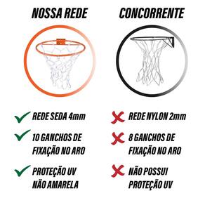 Durabilidade: fabricada em polietileno, material resistente ao uso frequente. Fácil instalação: conta com 10 alças que facilitam a fixação no aro. Versátil: pode ser utilizada em tabelas de basquete residenciais, escolares ou em áreas de lazer. Custo-benefício: ideal para quem deseja qualidade com preço acessível. Design clássico: cor branca que combina com qualquer tipo de tabela ou estrutura.