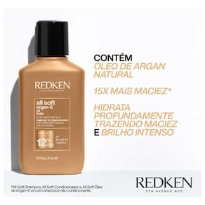 O Óleo Capilar Redken All Soft Argan-6 apresenta o fórmula enriquecida com Óleo de Argan, ativo essencial para hidratar e nutrir profundamente a estrutura da fibra capilar, além de versatilidade de uso conforme a necessidade do seu cabelo, como primer, para uso antes do shampoo de hidratação, secagem, para proteção térmica, finalização (após a secagem), para suavizar os fios, com os fios secos, para intensificar o brilho ou na composição de tratamentos de hidratação.