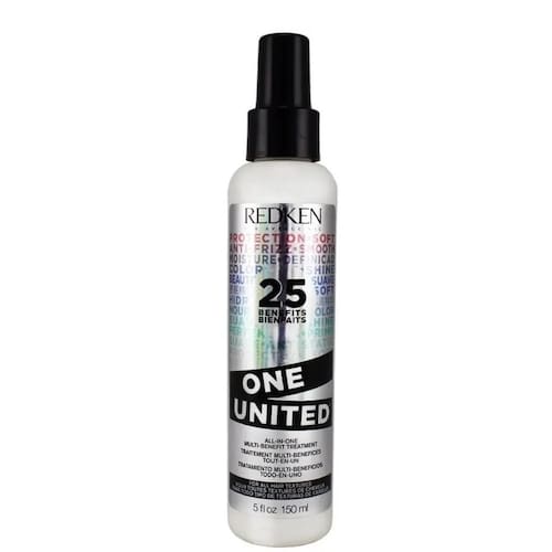 Redken One United 25 Benefits Tratamento Multibenefícios para todos os tipos de cabelo. Redken One United 25 Benefits oferece, como o nome mesmo diz, 25 benefícios instantâneos para fios macios, com brilho, protegidos do calor térmico, sem frizz e com efeito duradouro.