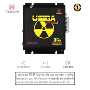 O Conversor USINA foi projetado para entregar o melhor desempenho possível efetuando a redução de tensão de sistemas 24 Volts para alimentar equipamentos 12 volt. Ele possui em seu circuito a topologia HALF-BRIDGE BUCK converter Síncrono em que se utiliza transístores MOSFETS de baixa perda com resistência interna de 2miliohms, isso garante baixa queda de tensão nos transístores traduzido em um alto rendimento acima de 92%, o que traduz em um produto leve e pequeno, porém, potente e robusto.