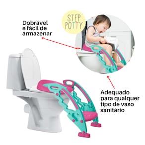 Redutor de Assento Multikids Baby Step Potty Rosa, desenvolvido com corrimão com segurador para reduzir o risco de acidentes, é dobrável para guarda facilmente onde você quiser, auxilia na independência da criança para usar o vaso sozinha e além disso também transmite segurança. Pode se adequar para qualquer tipo de assento sanitário, é confortável e antiderrapante e possui altura ajustável de acordo com a altura da criança.
