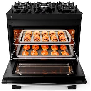 Para maior praticidade, o fogão possui 2 prateleiras deslizantes, permitindo que você ajuste facilmente a posição dos alimentos dentro do forno.