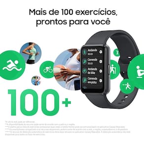 O Novo Galaxy Fit3 possui um Design esportivo e ergonômico em alumínio, que o deixa bem confortável e estiloso no seu punho. Possui um grande display de colorido e interativo, e é ideal para o monitoramento das práticas esportivas e de bem-estar. O Fit3 te ajuda a ter uma vida mais saudável, com o controle avançado da qualidade do sono e através do monitoramento dos seus exercícios (são 6 modalidades de esportes detectadas automaticamente, e 101 tipos programáveis). Possui detecção de queda e Alerta SOS. Além disso, com ele você recebe e responde suas notificações de chamadas e mensagens direto no punho. A bateria do seu Galaxy Fit3 possui uma longa duração, que pode chegar a 13 dias de autonomia de bateria. Ele é resistente contra água suportando até 50m (5ATM) de profundidade, e também resistente contra poeira (IP68). Marca: SAMSUNG