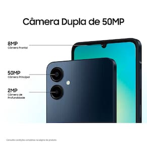 Tela imersiva e segurança aprimorada Desfrute de uma tela HD+ de 6.7 com taxa de atualização de 60Hz, proporcionando uma experiência visual envolvente. Para maior tranquilidade, o Galaxy A06 inclui até 2 anos de atualizações de sistema e 4 anos de atualizações de segurança, além de proteção avançada do Knox Vault e Cadeado Galaxy para seus dados.