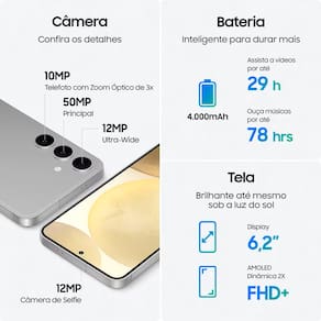 Com um design elegante e recursos incríveis, o Galaxy S24 é mais do que um smartphone, é uma experiência revolucionária que coloca o poder do futuro nas palmas de suas mãos.