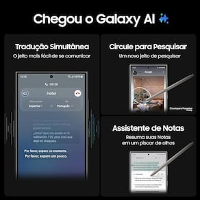Use o novo recurso Galaxy AI para ganhar produtividade na sua vida! Com tradução simultânea em ligação e mensagens de texto em aplicativos de comunicação e a tecnologia Circule para Pesquisar, que torna sua pesquisa mais rápida e intuitiva.