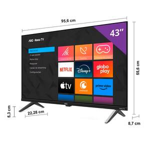 Com a avançada tecnologia Roku TV, este televisor inteligente é impulsionado por um sistema operacional ágil que proporciona uma experiência extremamente fluida. O Roku TV integra todos os principais serviços de streaming, como Netflix, Prime Video, Globo Play, Disney + e muitos outros, em uma interface única e intuitiva. Além disso, você pode controlar sua TV através do aplicativo Roku para smartphone, que inclui a conveniência de um teclado virtual para pesquisas, a capacidade de transmitir músicas e fotos, além de desfrutar de áudio privado diretamente do seu celular.