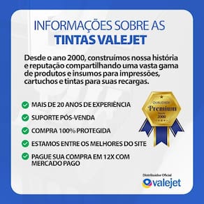 Refil 550ml Tinta Impressora L4150 L4260 KIT TINTA CORANTE VALEJET Qualidade e alto desempenho são características da nossa Tinta Corante VALEJET Unindo esses dois fatores, você poderá imprimir imagens e documentos sempre com alta resolução e baixo custo. Ideal para impressoras jato de tinta. Nossas tintas evitam o entupimento da cabeça de impressão e podem ser utilizadas em cartuchos recarregáveis e no sistema contínuo de impressão (Bulk-Ink).