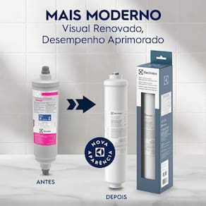 Tecnologia: Carvão ativado e polipropileno. Vida útil: Até 1.000 litros ou 6 meses de uso o que ocorrer primeiro . Retenção de partículas: 5 a 15 m. Redução de cloro livre: Mínimo de 75%. Classificação inmetro: C para particulado. Compatibilidade: Geladeiras electrolux side by side modelos ss90x, ss91x, ss72x, ss72b, sh72x, sh72b, sh70x, sh70b e is9s. Marca: Não Informado
