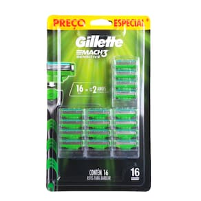O refil Gillette MACH3 Sensitive é ideal para as peles sensíveis. A fita extralubrificante com um toque de aloe vera proporciona um barbear rente e livre de irritação.