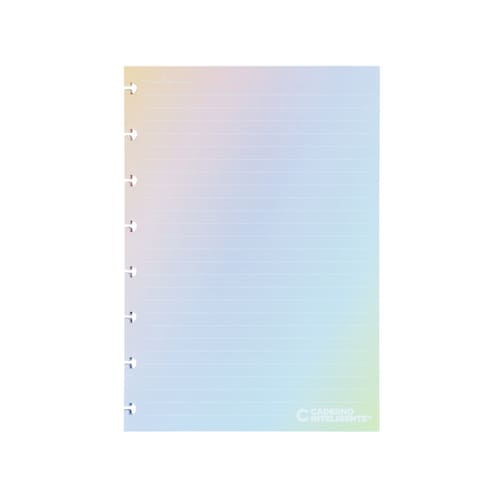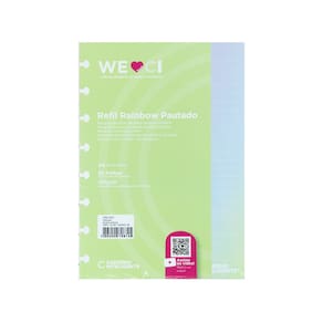 Em um degradê de cores, o Refil Rainbow é a mistura da beleza das cores do arco-íris e os sentimentos bons que cada uma delas carregam em si, com a funcionalidade das linhas brancas que suportam suas anotações, lettering, desenhos ou rabiscos sem as distrações das linhas escuras convencionais.