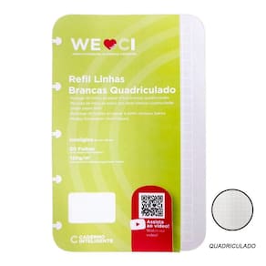 Refil Caderno Inteligente 120g Inteligine Linha Branca Tipo: Quadriculado Dê um novo visual ao seu Caderno Inteligente modelo Inteligine Temos folhas com linhas pautadas, pontilhadas e quadriculadas. Escolha a opção que mais combinam com você e mostre seu estilo único.