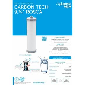 Refil Carbon Tech 9.3/4 para filtros e purificadores. Reduz o cloro e retém partículas (Classe C). Vida útil de 6000 litros.Tipo