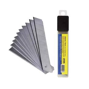 Lâminas para Estilete. Medida da Lâmina: 18mm (Estilete Largo) Quantidade de Lâminas: 10 Unidades por Blister Todas nossas Lâminas são Premium, maior resistência e durabilidade.
