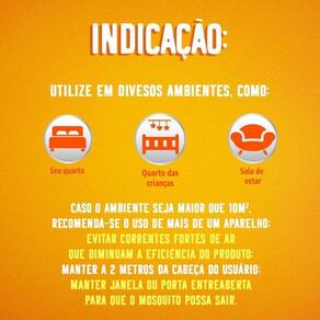 1- Remova a tampa do refil. 2- Insira o refil no aparelho e gire-o para a direita para encaixá-lo. 3- Coloque o aparelho na tomada 127v-220v-10w sempre na posição vertical. Se sua tomada estiver na vertical, gire o plug do aparelho. 4- Mantenha uma porta ou janela entreaberta durante o funcionamento do produto para que os mosquitos possam sair.