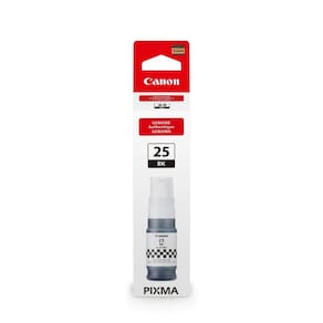 A GI-25BK é a garrafa de tinta preta da linha Canon MegaTank, ideal para documentos de texto e gráficos. Sua tinta pigmentada oferece impressões pretas profundas e nítidas que são resistentes à água e a borrões em papel comum. O design sem vazamentos facilita o reabastecimento do tanque de tinta da sua impressora sem sujeira.