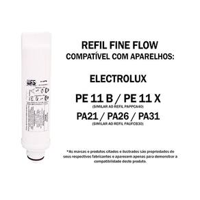 Refil electrolux pe11b pe11x pappca40 com imã wfs023im Filtro refil para os purificadores de água electrolux Possui imã. Refil compatível Fabricante: wfs Cós: wfs023im Compatível somente com os modelos: Pe 11 - pe11b e pe11x ao refil pappca40 Pa 21, pa 26 e pa 31 ao refil paufcb30 caso tenha dúvida de qual é o modelo do aparelho, a referência dele geralmente fica em uma etiqueta na parte de trás ou do lado do purificador Filtro específico apenas para os modelos descritos acima Caso o seu modelo seja outro, ele utiliza outro modelo de refil. Fazer a troca do filtro é realmente muito simples e leva cerca de 3 minutos. Junto dos filtros nós enviamos também nosso manual exclusivo com as instruções passo a passo de como fazer a troca. O filtro remove o cloro da água, elimina sabores, retém partículas de sujeira, barro, ferrugem, eleva o ph, além de eliminar 96% dos micróbios e algumas possíveis bactérias. Marca: Não Informado Ean: 7896283448119