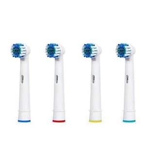 Cabeças de escova de dentes de reposição para escovas de dentes elétricas Oral B. Cerdas macias com pontas arredondadas para maior conforto. Limpe os dentes e massageie suavemente as gengivas enquanto remove a peste com eficácia, sem irritar as gengivas. Os dentistas recomendam que você substitua a cabeça a cada três meses. Essas cabeças de reposição têm faixas coloridas para que cada membro da família possa ter as suas próprias, e as cerdas também mudarão de cor para que você saiba quando é hora de trocar as cabeças. Compatível com escovas de dentes elétricas Oral B: Oral B Vitality Precision Clean (All Models)Oral B Vitality Dual Clean (All models)Oral B Professional Care (All models)Oral B Professional Care SmartSeries (All models)Oral B TriZone (All models)Oral B Advance Power (All models)Oral B Pro Health (All models)Oral B Triumph (All models)Oral B 3D Excel (All models)Oral B Plak Control 3D | Duo | TravelOral B Triumph Professional Care (All models)Oral B Triumph (All models)Oral B Sensitive Clean (All models)Oral B White Clean (All models)Oral B Interclean (All models)Oral B Pro-Health (All models) Pack com 4 cabeças de escova Cor: Branca Material: Plástico Dimensões: 14x1x9 cm