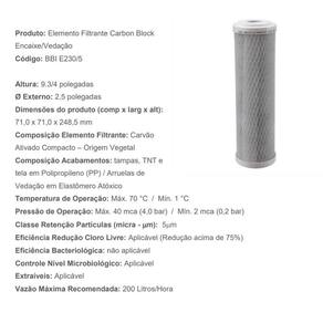 Ótima eficiência na remoção de cloro livre, Evita a proliferação de bactérias, Auxilia na retenção de sólidos e sedimentos suspensos na água, além de reduzir cor e turbidez, Preparação de alimentos e bebidas sem cloro, gostos e odores desagradáveisTipo