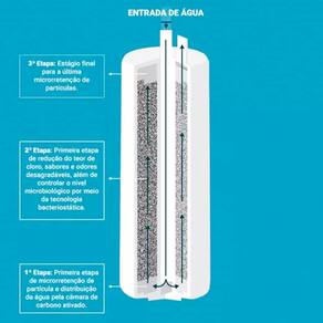 Remover cloro, eliminar sabores, reter partículas de sujeira, barro e ferrugem, elevar o pH e inibir a proliferação de bactérias.Vendido por 24 HORAS FILTROS e entregue por PontoFrio