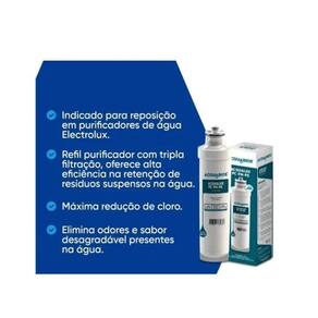 Refil Filtro Electrolux Pc41b Pc41x Ph41b Ph41x Pe11b Pe11xFiltro Refil para os Purificadores de Água Electrolux Compa Filtro Refil para os Purificadores de Água Electrolux Compatível somente com os modelos: PE 11 - PE11B e PE11X ao refil PAPPCA40 PA 21, PA 26 e PA 31 ao refil PAUFCB30 caso tenha dúvida de qual é o modelo do aparelho, a referência dele geralmente fica em uma etiqueta na parte de trás ou do lado do purificador Filtro específico apenas para os modelos descritos acima Caso o seu modelo seja outro, ele utiliza outro modelo de refil. Fazer a troca do filtro é realmente muito simples e leva cerca de 3 minutos. O filtro remove o cloro da água, elimina sabores, retém partículas de sujeira, barro, ferrugem, eleva o PH, além de eliminar 96% dos micróbios e algumas possíveis bactérias. As marcas e produtos citados e ilustrados são propriedades de seus respectivos fabricantes e aparecem apenas para demonstrar a compatibilidade deste produto. Todo filtro possui total contra defeitos de fabricação por um período de pelo menos 30 dias. O elemento filtrante pode saturar antes de sua vida útil prevista dependendo das condições da água de onde será instalado, como excesso de barro, areia, ferrugem e outras impurezas sólidas. Marca: Não Informado Ean: 7894377003367