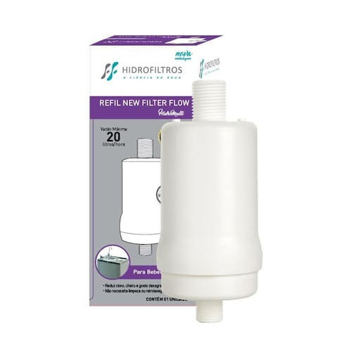 Refil com carvão ativado atóxico e natural para uma filtração completa; Elimina gostos e odores desagradáveis presentes na água; Vazão adequada para bebedouros; Elemento filtrante descartável, não necessita retrolavagem; Reduz os índices de cloro presente na água.Tipo