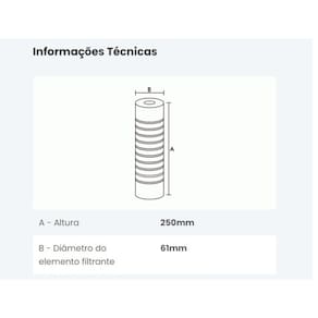 O Elemento Filtrante (Refil) é o dispositivo responsável por reter as partículas sólidas dentro do Filtro, fabricado em polipropileno que um material atóxico, ele possui alta capacidade de remoção de partículas como areia, barro, ferrugem e outros sedimentos.